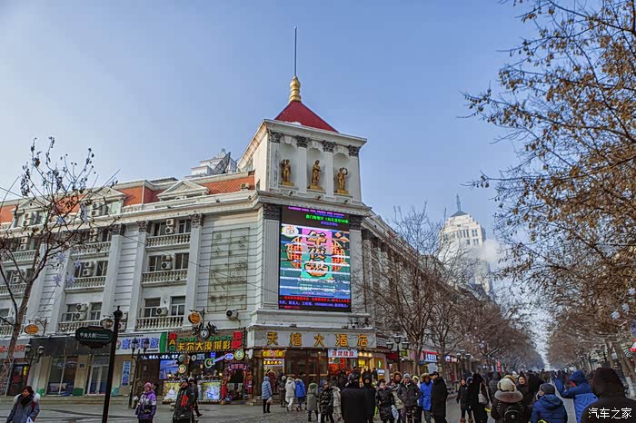 取暖结束继续逛,沿着中央大街往松花江前进,中央大街典型的俄式建筑,地上的面包砖也是纯正俄罗斯血统,街道两旁店铺林立,能看到很多的俄罗斯工艺品店和很多卖红肠的店铺。