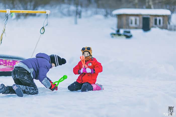 穿好衣服,出发玩雪去了。酒店门口有辆僵尸车,车上积满了厚厚的雪,两个小朋友当然不会放过,每次进出酒店都不忘抓上几把,这也成了我们进出酒店的例行仪式了。