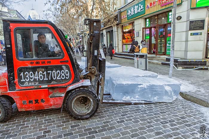 遇上正在运冰的工人,据说这些冰都来自松花江