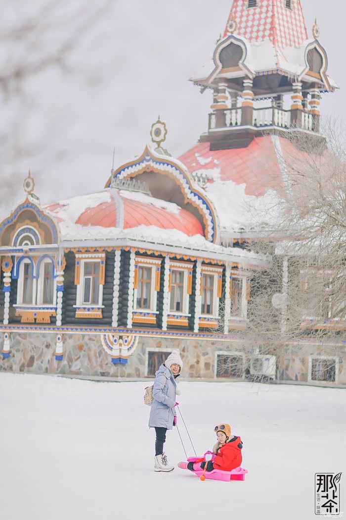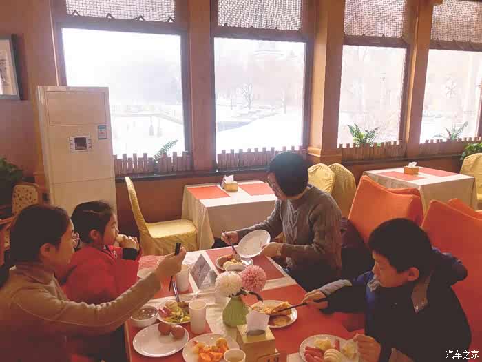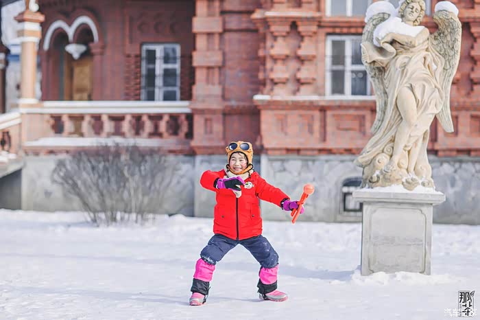 天亮之后先去餐厅吃早餐,餐厅跟酒店不在一个建筑内,步行过去也要7、8分钟。我们去的晚,剩下的东西不多了,只能管饱吧。吃过早餐小家伙们又开始玩雪啦,庄园的雪明显没有雪乡、雾凇岛的松软,应该是下了挺久一直没化已经变硬了,小的们可不在乎,一样玩的兴致勃勃。而庄园风情各异的城堡和稀疏的游客拍照倒是非常合适。