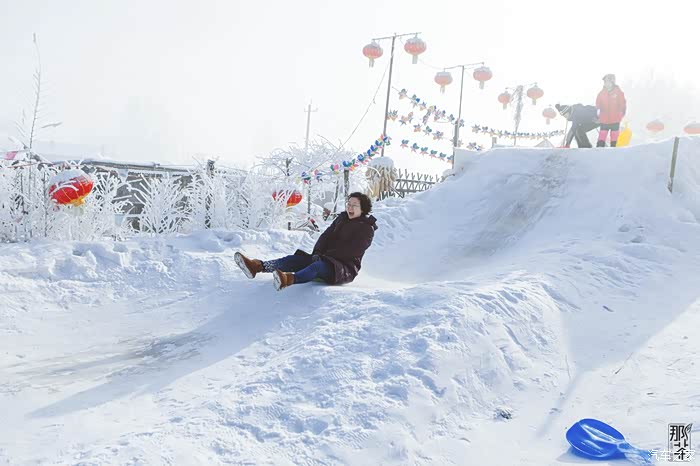 客栈在自己的院子里还堆了这么一个冰滑梯,那就玩起来呗