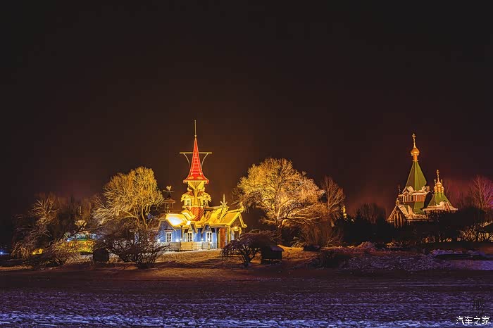 到达庄园已经是晚上了,酒店办理好入住之后,大家已经不想从温暖的室内出来了,那就我一个人扛着相机去拍几张夜景吧。偌大的庄园入夜后特别安静,只有我一个人发出的踩雪声,拍完夜景也赶紧回去吧。