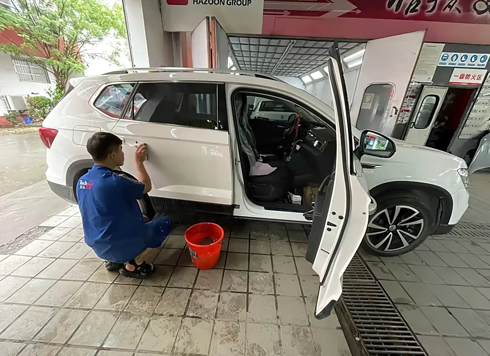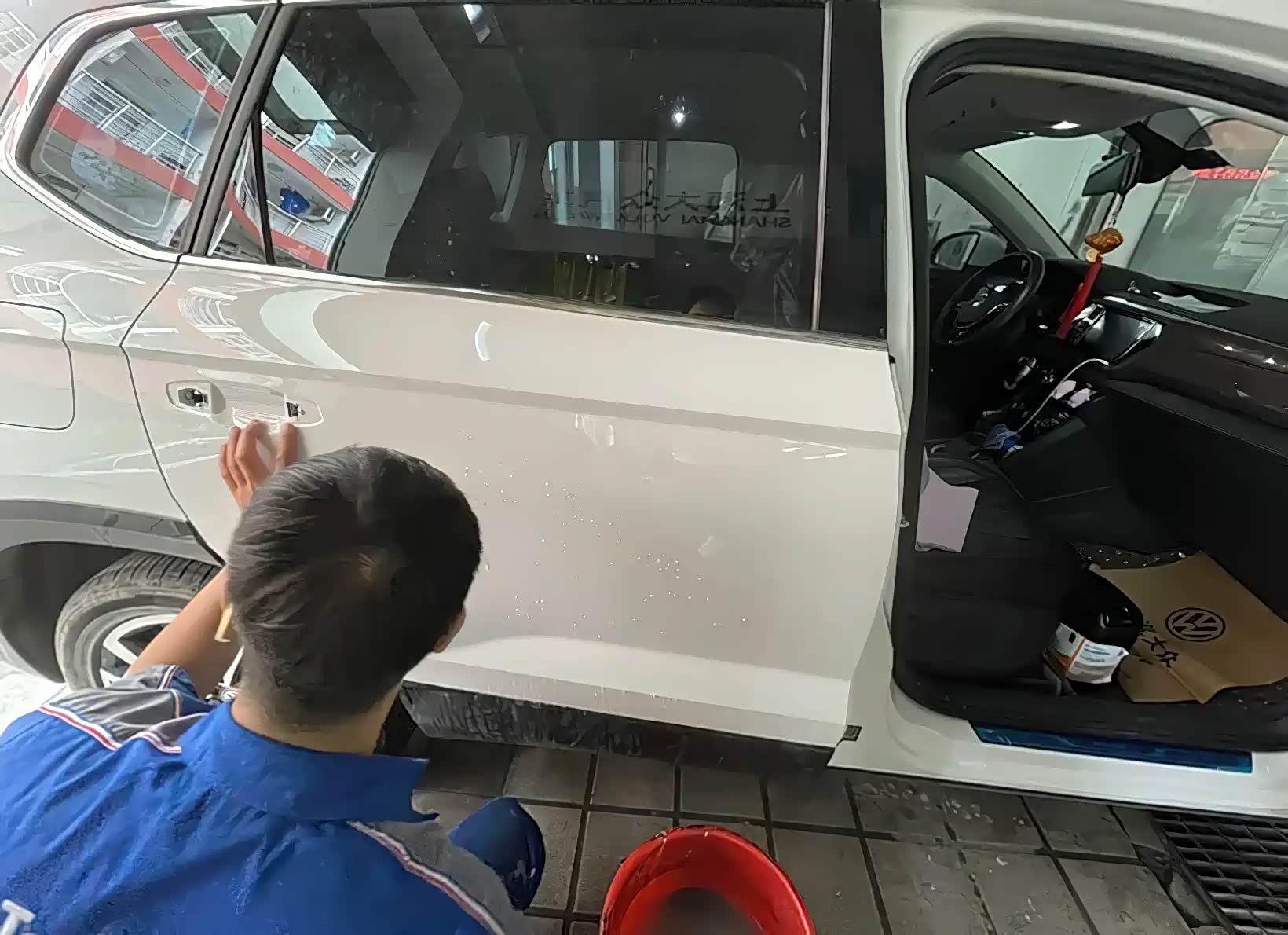 维修师傅正在给车子安装最后的一个步骤,就是把门把手的位置给安装好。个漆面就完全做成了,我检查了一下发现漆面和原厂的基本上是没有任何区别的,也没有任何的色差。