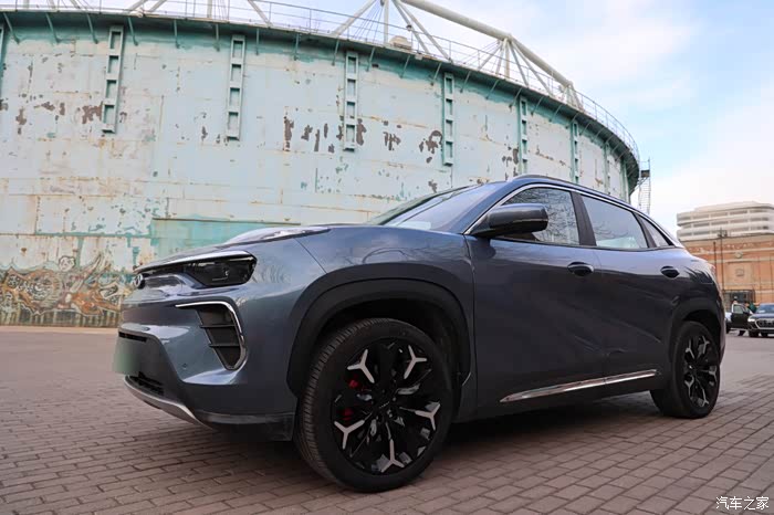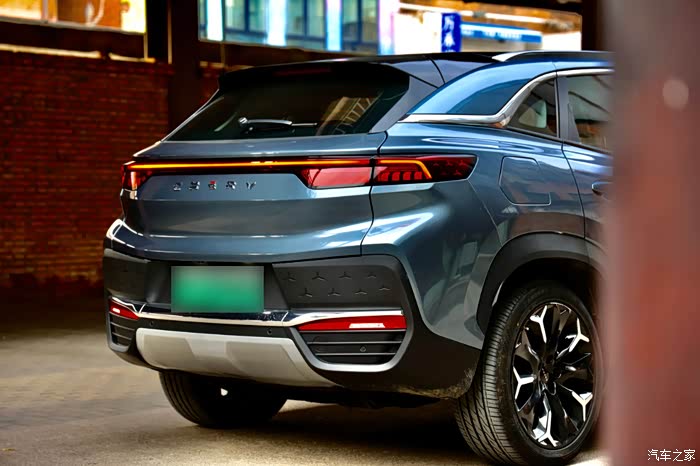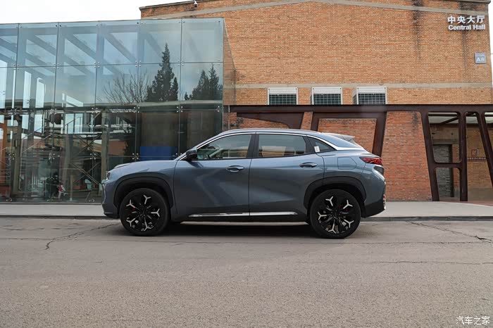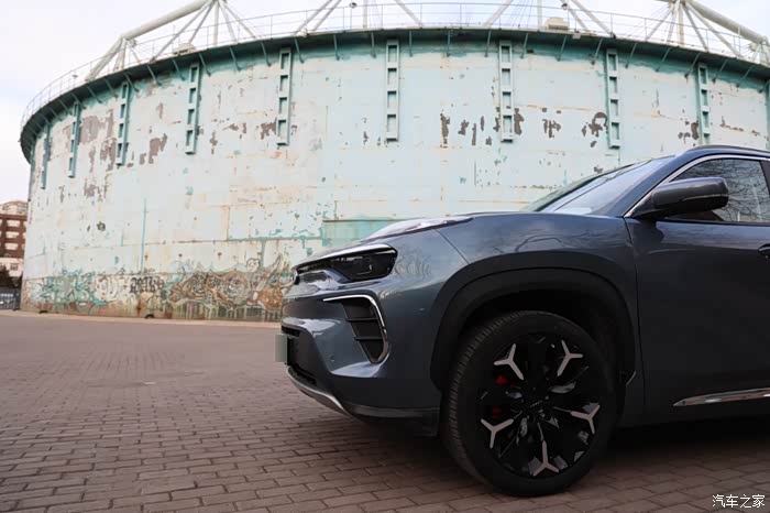 车身整体线条特别流畅饱满,挑高的轮眉加入了黑色宽边设计,再搭配上超大轮毂,整体越野气息特别浓厚。