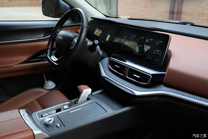 内饰走的是时尚科技感路线,车内搭载了智能双联屏,特别时尚科技,它的功能非常丰富,如GPS导航、汽车联网、语音识别控制等。它可以通过语音控制多媒体系统、电话、导航、空调和天窗。扁平的空调出风口样式很有艺术感,下方集成了实体按键。整体内饰线条柔和,搭配不同材质的组合,车内的时尚氛围让我非常满意。