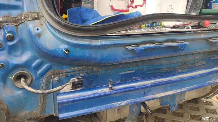 11.拆掉后保险杠就能看见车身预留的雷达支架安装位置,不过是用防水胶密封的,扣掉,毕竟我们要上雷达了