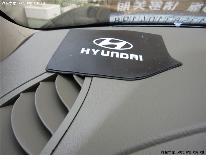 买的现代防滑垫,本来是准备放在方向盘上面盖住华泰标的,但是放上去一看,不搭。所以放前面了