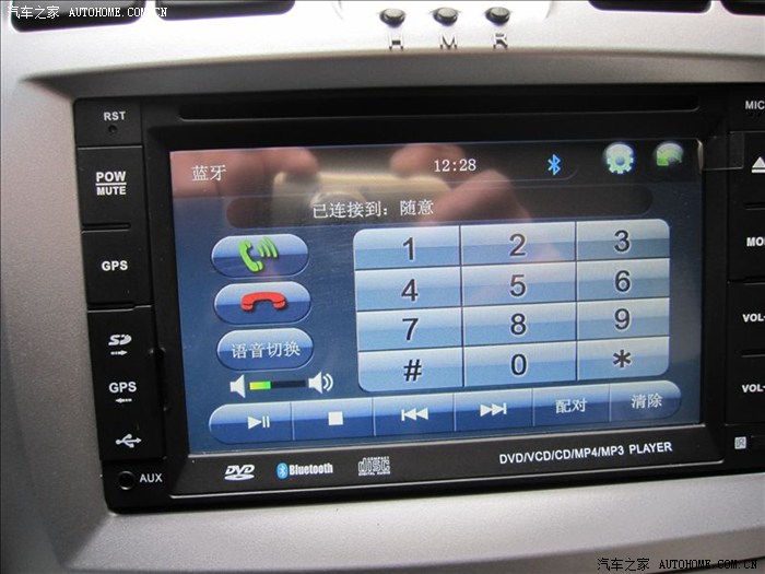 DVD导航一体机,现在是蓝牙连接状态,打电话,接电话全部搞定,安全第一。