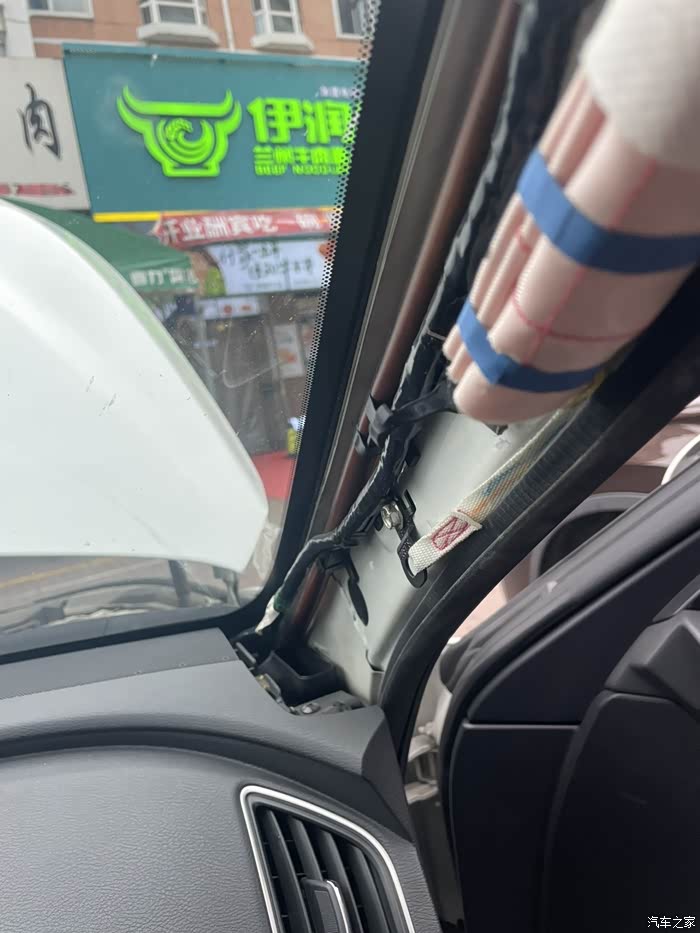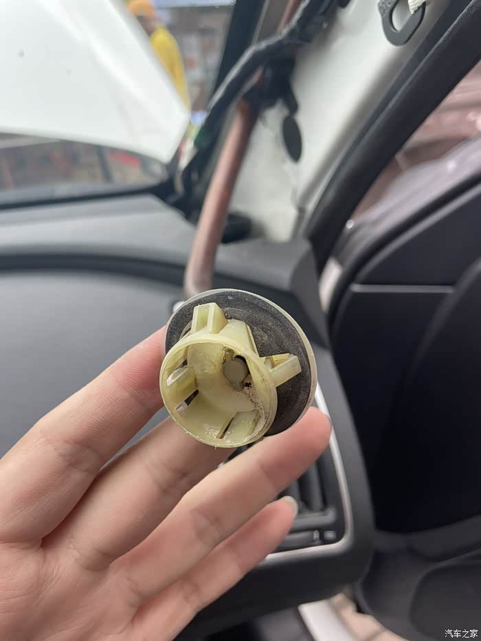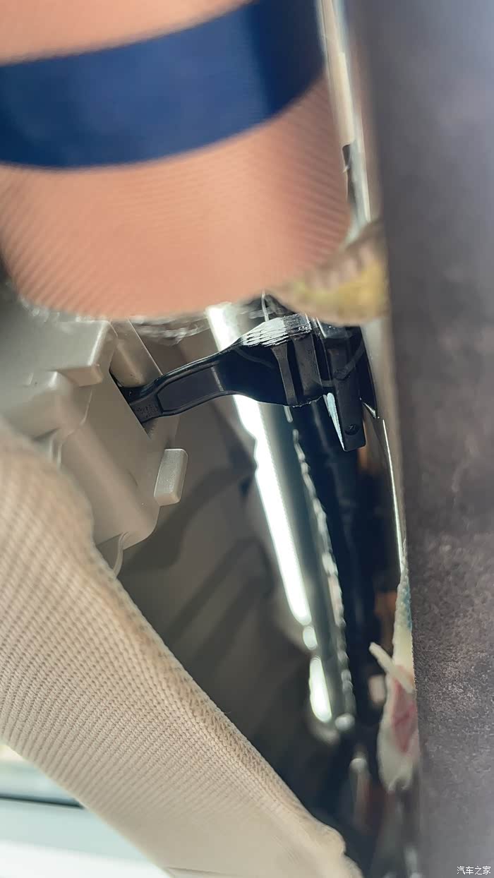 特别说明一下,a柱盖板里面有个卡扣,要用钳子转黑色右边部分90度,然后左边部分就可以和盖板分离了。