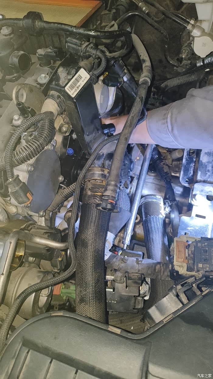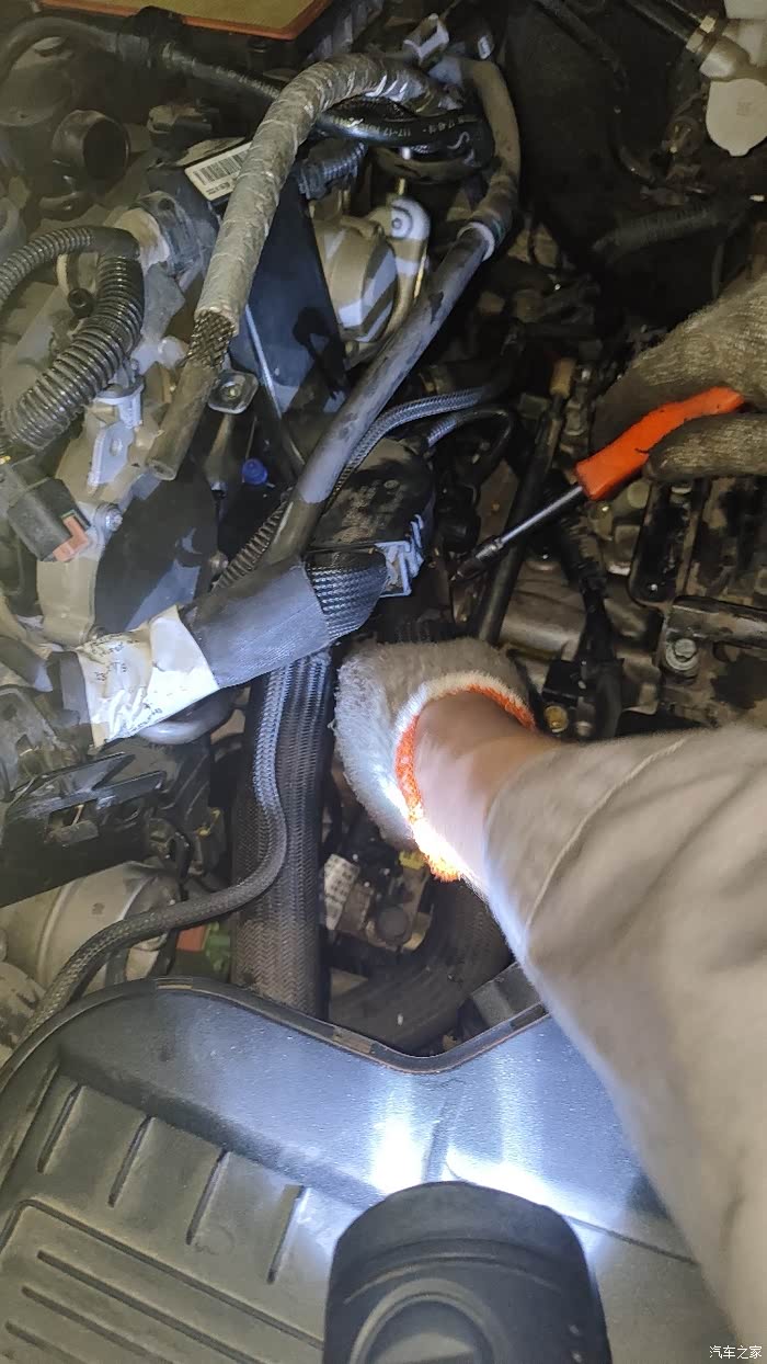 起动发动机,直到风扇运转。注意更换出水室需要发动机冷却一下,冷车更好,以免烫伤。