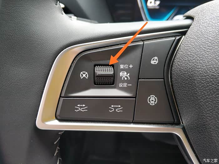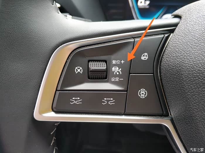 箭头指向的按键为调节跟车具体的按键,箭头指向的按键为更加与前车的跟车距离