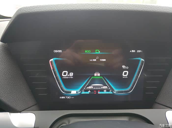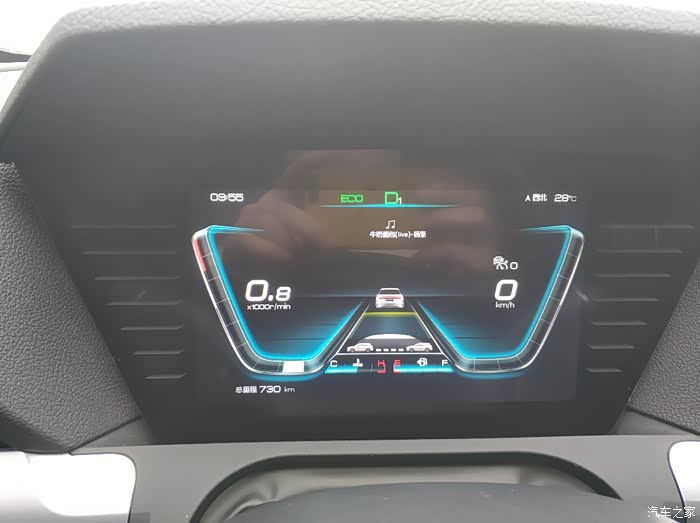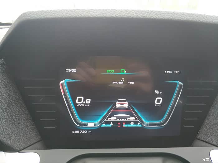 系统检测到前方车辆,距离较远时,仪表盘显示为绿色