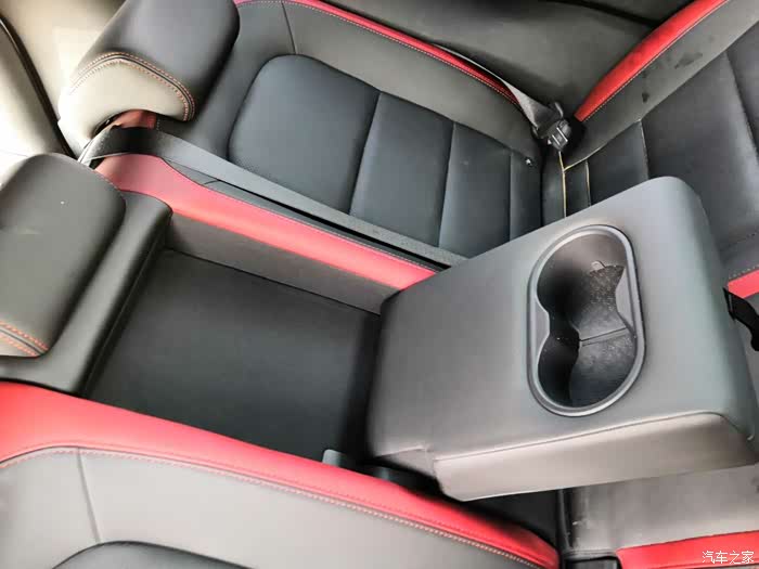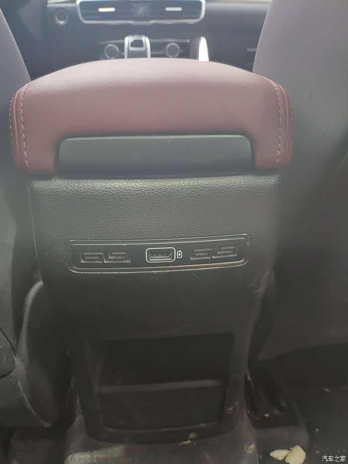后排扶手箱后部。一个USB充电口。下方一个挖空的设计。可以充电的时候把手机放进去。也可以放一些小零碎