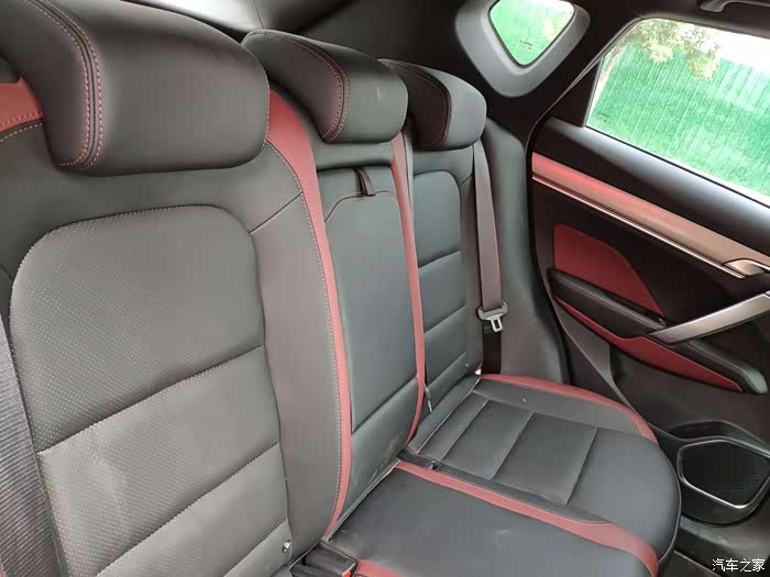 后排的话。前排座椅位置不动。坐在后排。腿部空间还算可以,有三指的剩余。头部空间就有些勉强了。剩余一指。坐在中间的话。后排中间的隆起可以忽略不算。隆起不算高。这点给点赞。最起码坐在后排空间的人脚不难受。不过目前为止我的缤越还没有满载过。哈哈。最多乘坐了4个人。日常出行乘坐时木有问题的