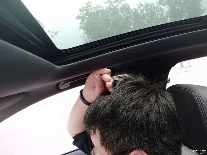 看。头部空间四指。此时我的坐姿是直着的。如果说正常开车。靠着座椅靠背舒服着开。头部空间还是挺不错的。