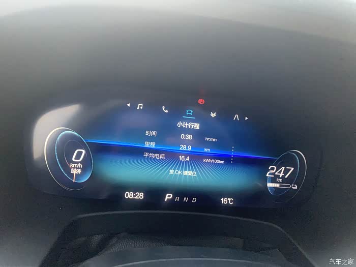 出发表显续航里程247KM到达表显里程218KM,表显里程行驶29KM,实际行驶里程28.2KM,续航达成率97.24%