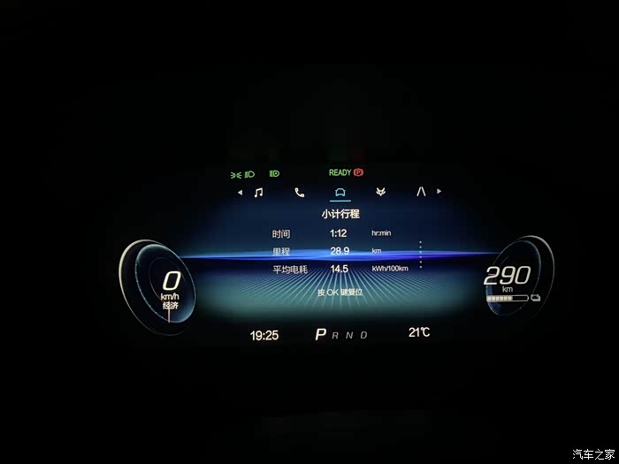 出发表显续航里程320KM到达表显里程290KM,表显里程行驶30KM,实际行驶里程28.9KM,续航达成率96.33%