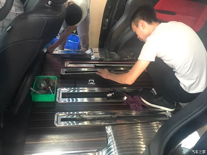 咨询了很多,最终决定去广州,原因如下:广州技术相对来说比较成熟,也有可能因为做改装的很多,所以价格方面也比当地要低一些,做了以下项目:360夜视王全景,吸顶电视,窗帘,电动尾门,后视镜折叠,木地板,座椅通风按摩,仪表台门板方向盘安全带全部翻新。其中的星空顶和吸顶电视主要是为了女友,给她一个浪漫的行车旅行,座椅通风都不用讲咯,夏天很实用,特别是屁股容易湿的人必备的!电动尾门也算是为自己选的吧,只要开车出门,就肯定要用到电动尾门,手开手关的一点都不方便,还是电动的好,钥匙控制,一点毛病都没有。