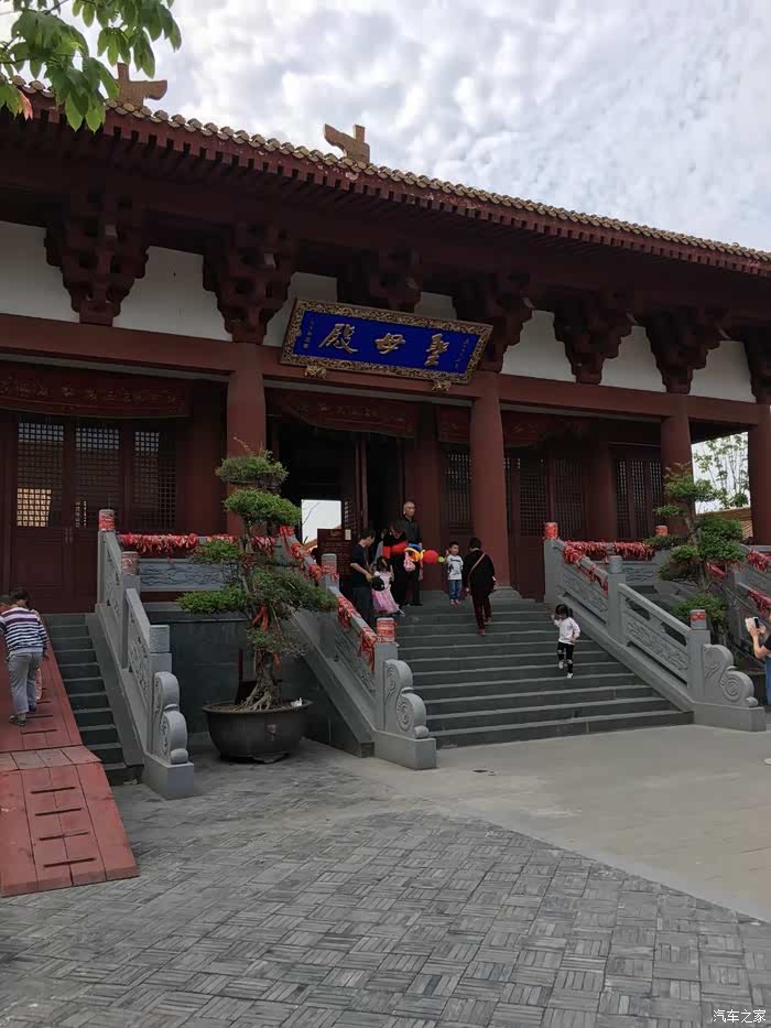 5.1小长假到哪去?小舅子家里的女儿嫁到苏北泗阳县,距我们这近600KM,她从结婚成家生子为人之母巳四年了,我们一直没去过。最近买了新房,几位至亲商定利用5.1小长假,开上两辆车前去道贺。4月30日早5点多起床,一切准备就绪,近6点驶上高速。途经合肥、南京,然后一路北上,一路顺畅,下午2点半到达江苏宿迁市泗阳县城。因工作关系,我去过皖北多个县市,给我的印象大多脏乱差,街道不整洁,垃圾乱扔乱放,河道污染…但在这里,同样的纬度,但给我印象深刻的是,道路宽厰整洁,城市绿化覆盖率高,不是到了这里,根本感觉不到这是苏北,还当是在江南某地。稍事休息,准备住下,打开携程网,点击旅店,符合大众性质的标准间还真不贵,问到第二家,一家叫煜康大酒店的正好有房,预约好吧!那儿离侄女新房有点远,大约9公里,有车方便,开过去也只十分钟这样。过去一看,还是四星酒店,条件不错,可免费泡温泉,看电影k歌一应具全。晚上就在大酒店就餐,喝酒消疲,洗净睡下,一觉到天亮!第二天,5.1当天中午喝喜酒,下午开车到妈祖文化园游玩。文化园背靠京杭大运河,有天后宫、福字墙、妈祖像?,人山车海,相当繁荣。第三天,5月2日吃过早饭,到了该返回的时候了,心情相当复杂,虽然对她目前的生活感到满意,但总是不舍,让远方的亲人牵挂、想念。分别的场景难舍难分,不多说了。原路返回,到了南京,大雨傍沱,视线模糊,只得小心翼翼,这样的情况以后又遇到三四次,驾驶技术受到严重考验,还好,一路平安,下午四点到家!本次行程结束,有图为证!