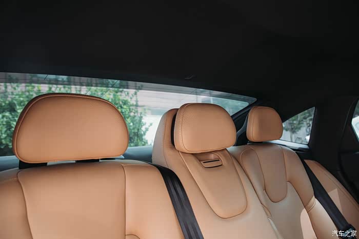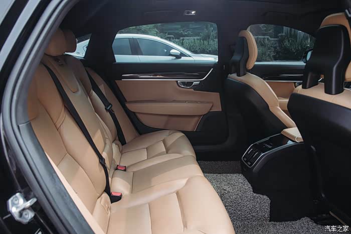 后排空间一直是行政级轿车的”主战场“,S90无疑拿出了近满分的成绩,但除此之外,我也很难找出S90的后排加分项。首先是后排坐垫较短,后排高度偏低,再加上偏硬的填充物,这多少会影响乘坐舒适性。