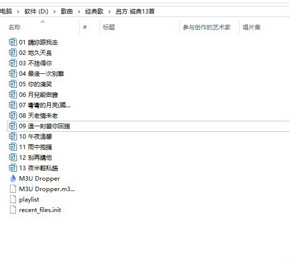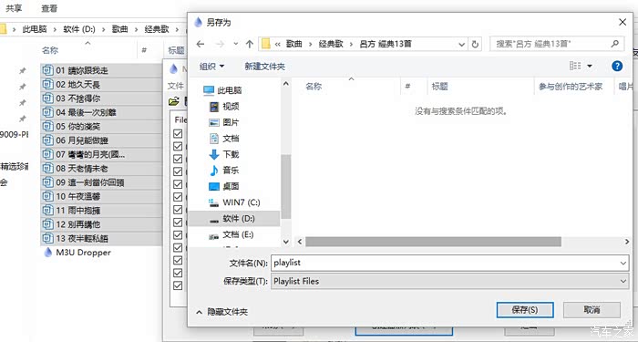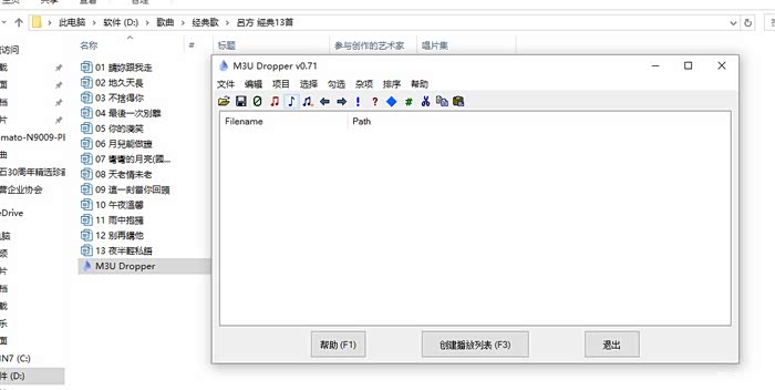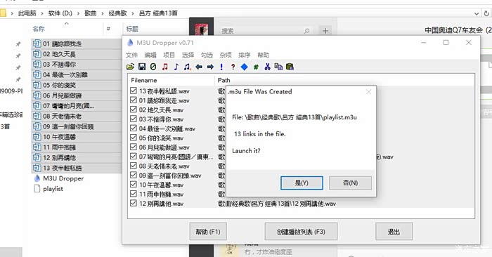 第一步,把M3U Dropper(这个可以度娘那里找,之家发帖太多要求了,刚才编辑了很久,一发出去就说有敏感字体,被删两了,只能再来一次了)放到wav音乐的文件夹里面