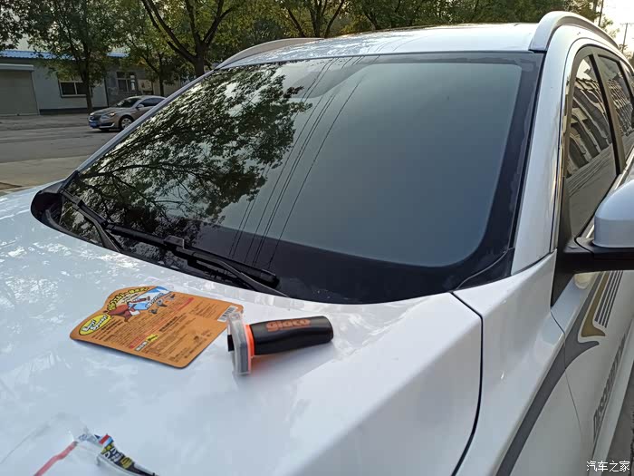 今天就给我家大虎子去一去玻璃油膜,前几天用雨刮器总是刮不太干净,有一些小黑点,应该是我上几天去开发区厂子里面弄得,不好去除,不敢用毛巾硬擦。
