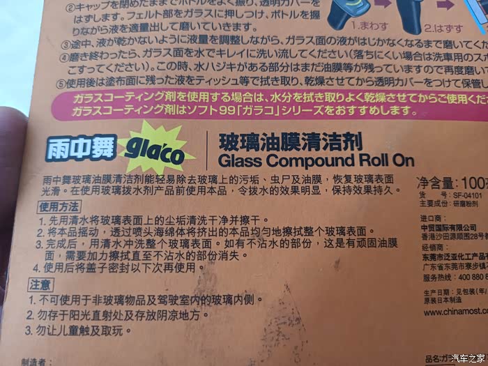 使用过后车前挡风玻璃的通亮度和清洁度是有了一定的提升,我这车子的油膜不是特别的明显,主要是一些比较顽固的小黑点子,用这款清洁剂确实很轻松地去除掉,专业的东西干专业的事,我之前用过牙膏,用过肥皂,效果一般,不能形成比较明显的驱水的保护膜,这款可以在清洁油膜的时候形成一层驱水膜,在视频上表现比较明显,等过段时间我看这层驱水油膜能保持多长时间,到时候再来更新评价这个清洁剂。