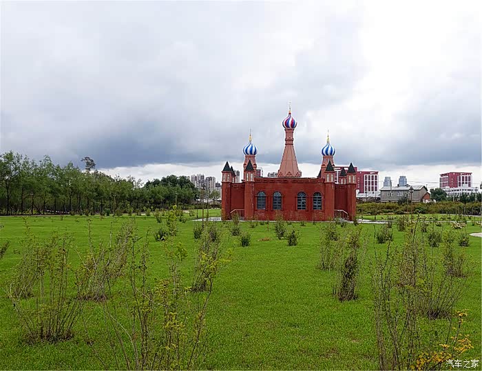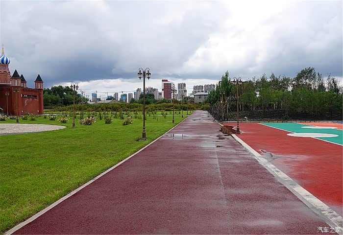 雨后天晴,虽然天色还是有点阴阴的,但是空气特别的清新,就像洗过一样,漫步公园内的小路,听着轻音乐,还有俄式建筑,此情此景挺美的