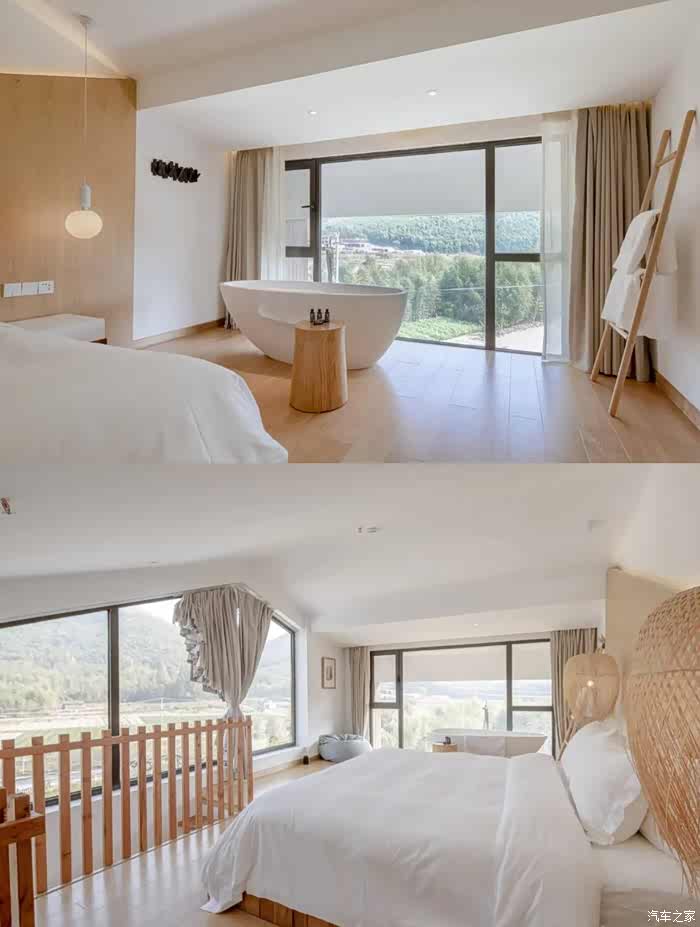 鱼缸仅有6间房,且都是以鱼来命名,名为“鲤、鲸、鲟、鲲、鲛、鲑”体其中除了亲子房“鲟”和双床房“鲛”其余四间都为有临窗及大浴缸的房间,还有独立庭院,以及阁楼房型。房间内大面积的留白与原木家具,每一个转角、走廊、平台都是不可错过的,坐着吹吹晚风看看风景,超幸福。