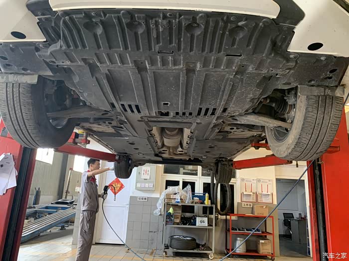 像这种基础的日常保养,主要就几块内容。维修人员抽完机油后,换上新的机滤,然后再加入新机油。之后就开始检查底盘和悬挂,是否有漏油等情况,细心的师傅会给你把轮胎上的小石子扣一扣,其实意义不大。接下来就是检测轮胎胎压,每个轮胎都会给打到2.5个压,前后轮胎都一致。重要部件检查完毕后,就会检查“两滤”,看看车主是否更换。