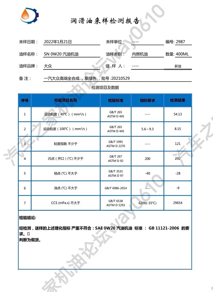 1.100度运动粘度,假货8.15,真货7.85。假机油测到过无数个,粘度基本上都在13、14、15左右,是高粘度矿物油或者其他类型的油冒充的,而粘度这么低且在20范围内的这是第一次遇到,点个赞