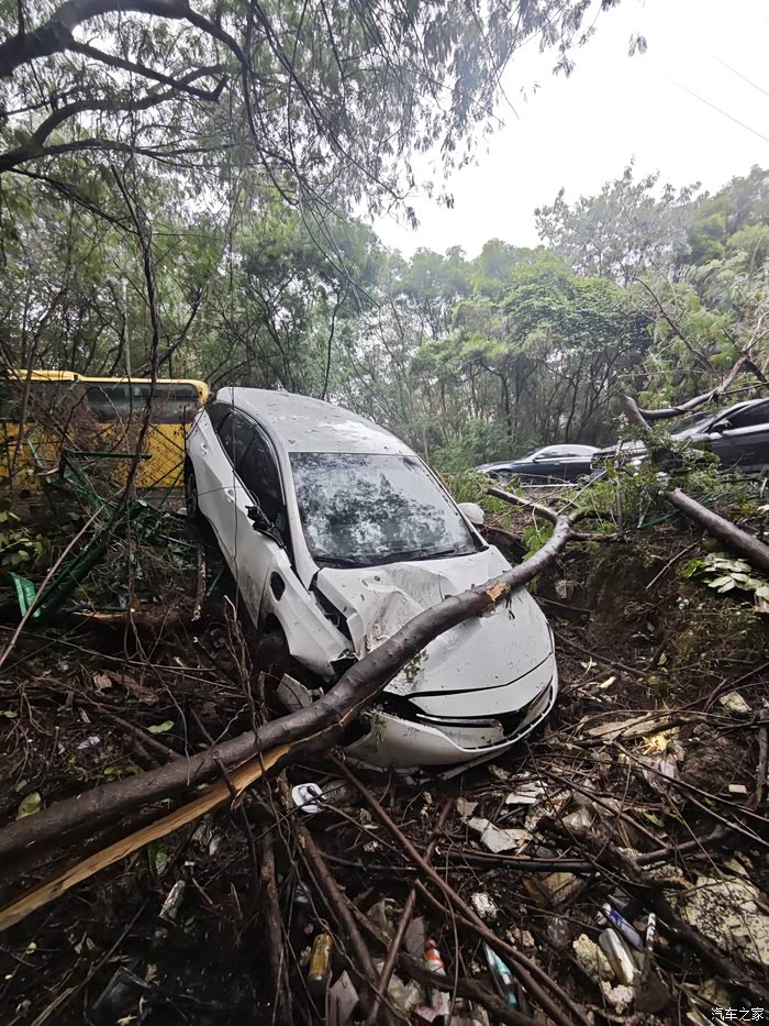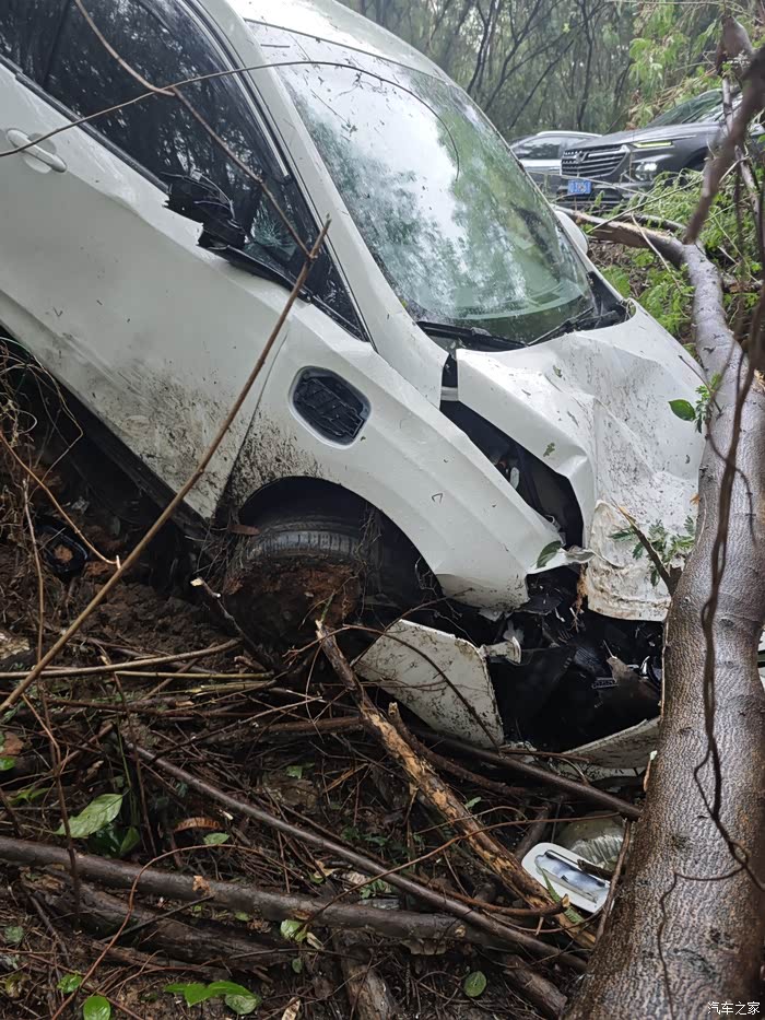 脚崴了,两个门打不开,大灯前杠引擎盖挡风玻璃A柱车顶后视镜都有不同程度损伤