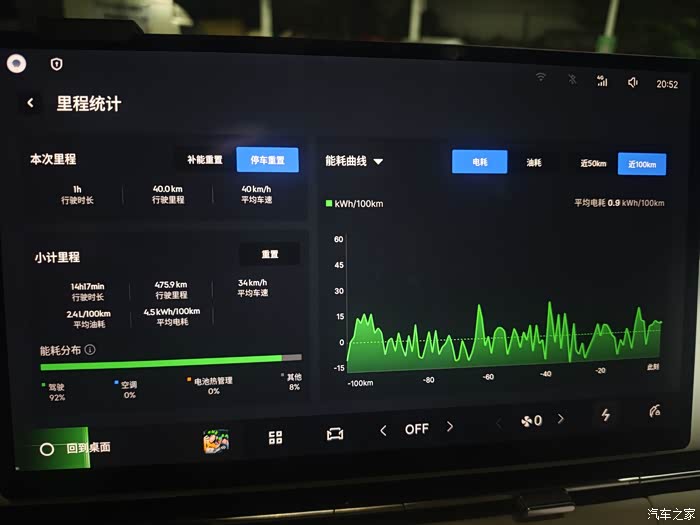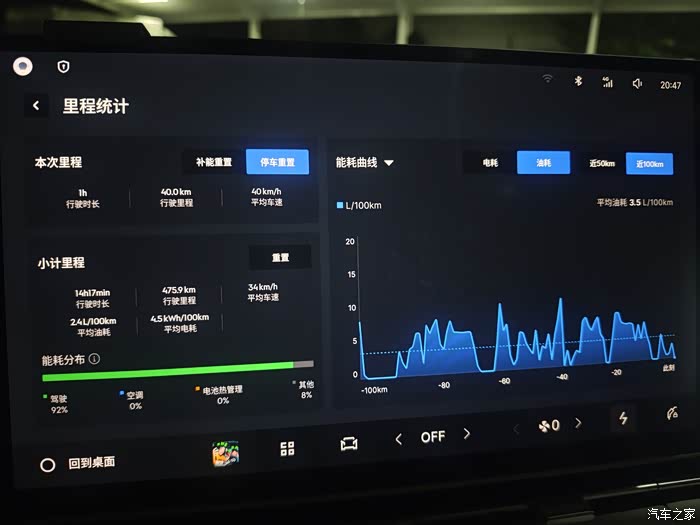 刚开始自己设置的是强制保电40%,市区百公里馈电油耗要4.7,听了圈友的建议设置智能保电,现在市区百公里馈电油耗3.5,表现还不错,电耗百公里大概14左右,不开空调的情况下。实际纯电续航(智能保电30-40)大概在75公里左右。