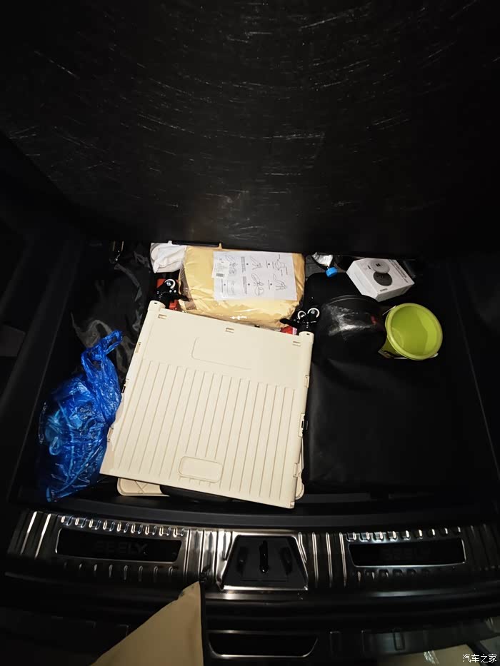 后备箱底层可以放很多东西,盖板盖起来,后备箱完全就是空的,长用物品全部放底下了。