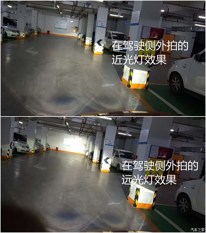 这是站在驾驶室外侧高举手机拍的近光和远光效果图。