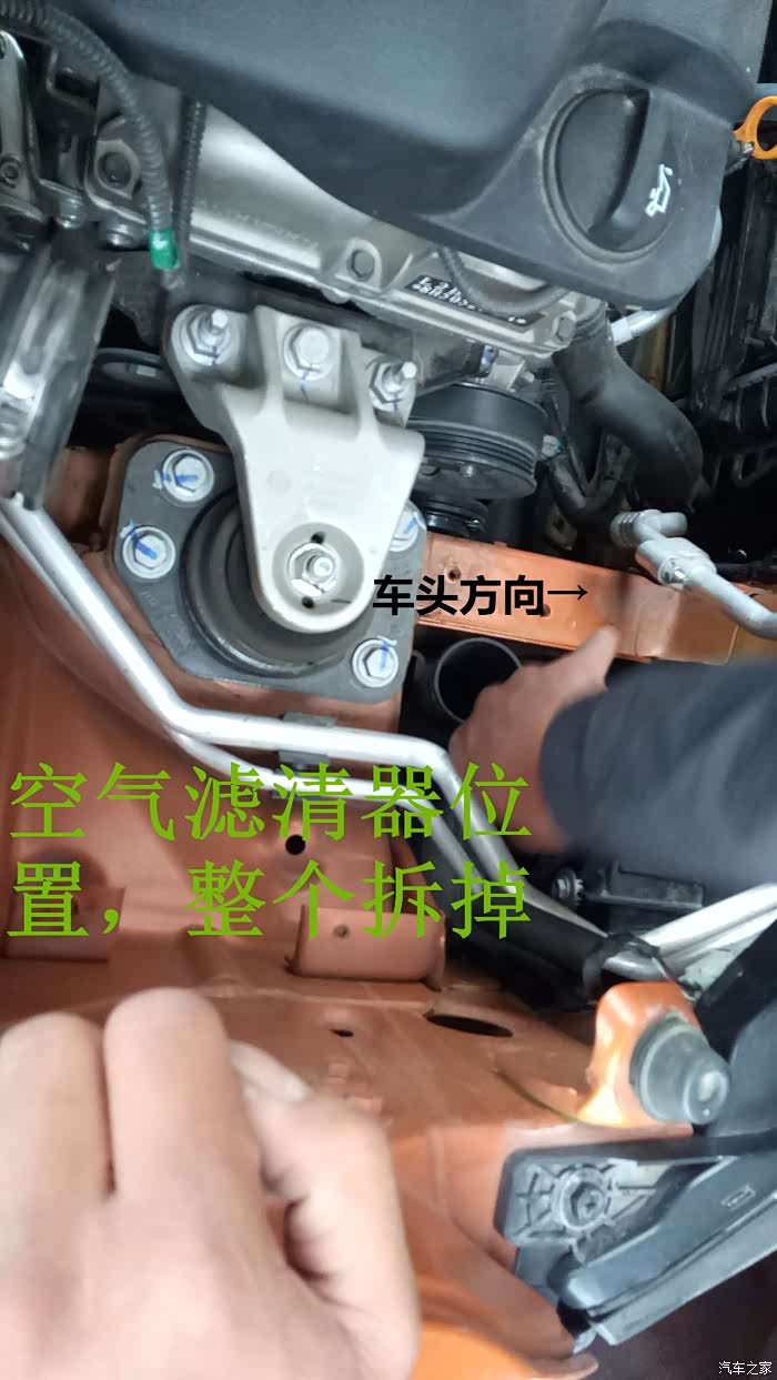 整个黑色的空气滤清器盒子拿掉之后的样子。