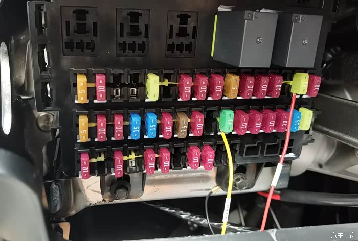 红色接acc,找不着是哪个,我接的点烟器,黄色接电瓶线,我直接接的车锁遥控那个保险,黑色搭铁下面的螺丝,这样就能做到停车监控了