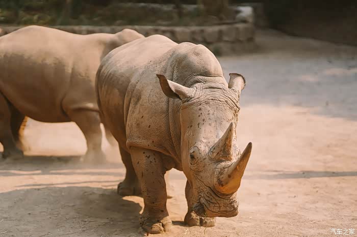 接下来这个就是比较珍贵的南非白犀牛,它身体特别浑圆粗壮,听导游介绍说身上的泥巴是为了降温,而且园里的这几只犀牛,公犀牛是个妻管严,他的老婆一凶它就跑好远。哈哈