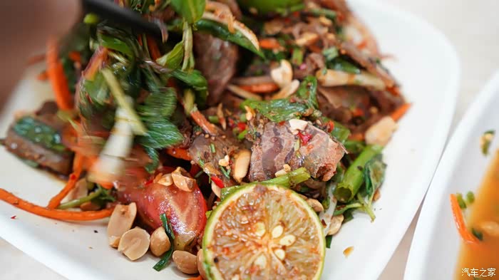 在还没到西双版纳的时候,我们就听朋友介绍了几家必吃的傣味美食。第一家店就是啰啰冰屋位置在:景洪市宣慰大道96号,建行对面。饭店旁边就是一个大型的停车场,很方便。西双版纳这边的菜都叫傣味,口感主要是酸酸辣辣。准确说应该是特别酸特别辣。偏重口味,啰啰冰屋的招牌菜就是柠檬舂鸡脚,是用木瓜,番茄,柠檬,洋葱,花生碎一起舂。最后再放小米辣和冰块,那叫一个酸爽醒脑。