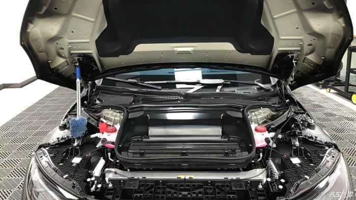 这里值得吐槽的是,奔驰EQE的前机舱盖竟然没有液压支撑杆,也是醉了。打开前机舱盖,要用一个临时液压杆支撑,如果恰巧没有,就只有用一些其他的物品临时充当一下支撑杆了。