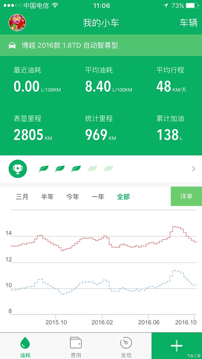 前面2个月,自己生病,车由老爸一直开的,老爸在速腾和博越来回开,最近一个月才能开车,这是最近的小熊油耗记录