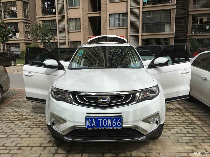 最后来说说现在的博越吧,博越其实很早在开帝豪就关注过他了,那时候大肆宣传,没看到实车,也没啥感觉,每次到4S店保养帝豪的时候,就会去前台销售看看新车,最初出来的GX7,看了内饰不咋样。后来看了博越的宣传片,就开始关注博越了,有个朋友去了趟宁波,回来说博越内饰外观不错,于是就有了3月26日,公布价格就订车了打算,老婆开始又是不同意,后来看到了实车,确实还可以,外观和内饰给她感觉都挺好,通过。等了3个月,6月22日拿到了实车。