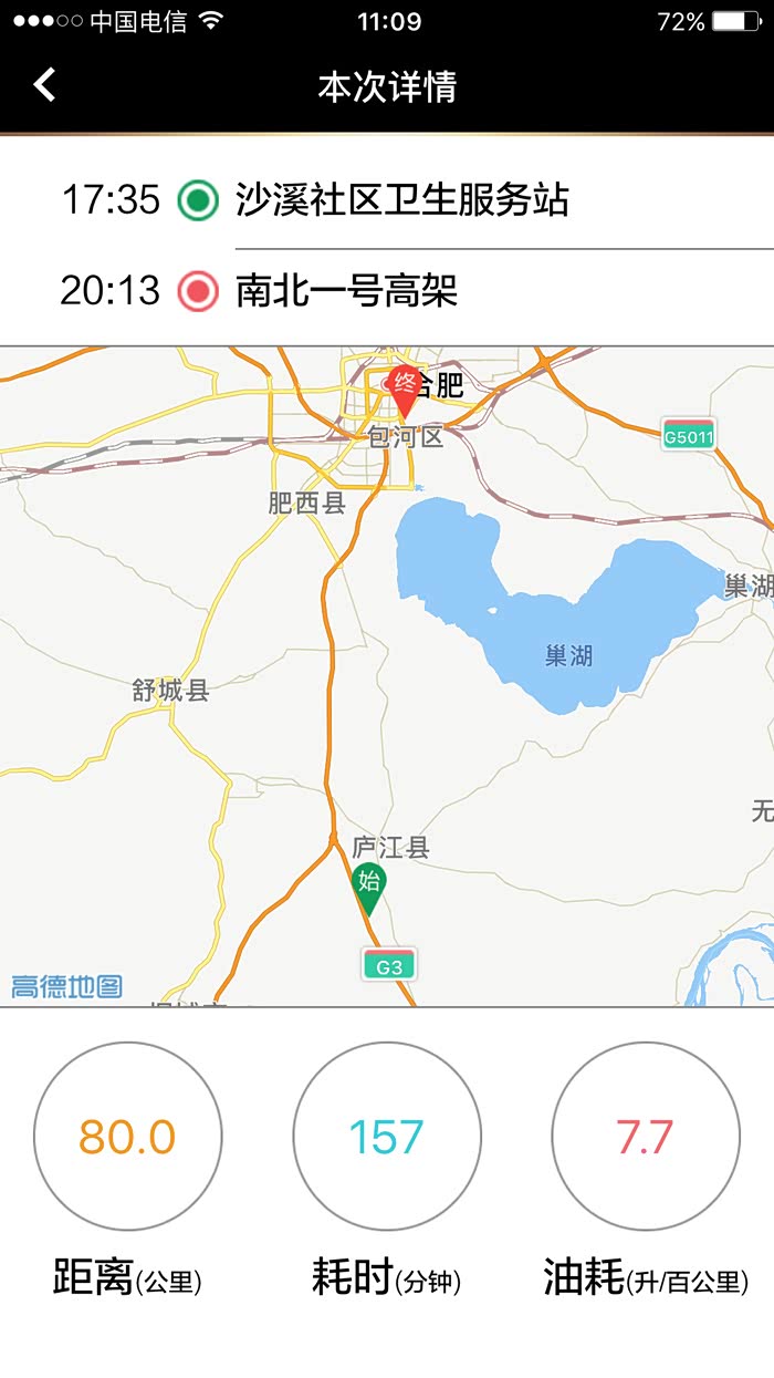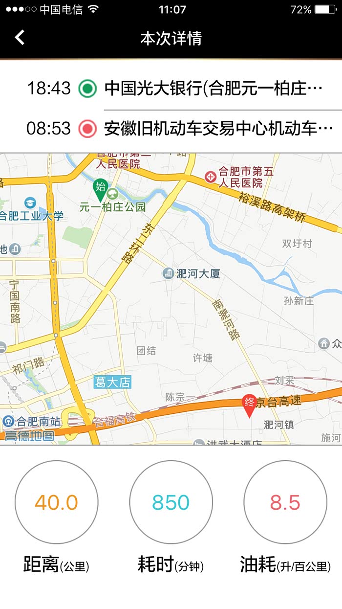 从高速服务区到合肥入城高速口油耗,堵了快2个半小时