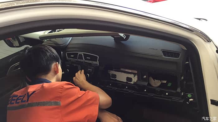 第二次故障,7号导航不定位了,到了4S店,把定位装置安装在副驾驶了,说安装在主驾驶,设备容易干扰,也不知道是不是真的,不过修理技师王师傅还是很不错的,问什么都能耐心给你解释。可惜我的小博越就这样无情的给他扒开了外衣。希望这些小问题,吉利在新车研发时候注意些,别让车主为了这些事情来回跑