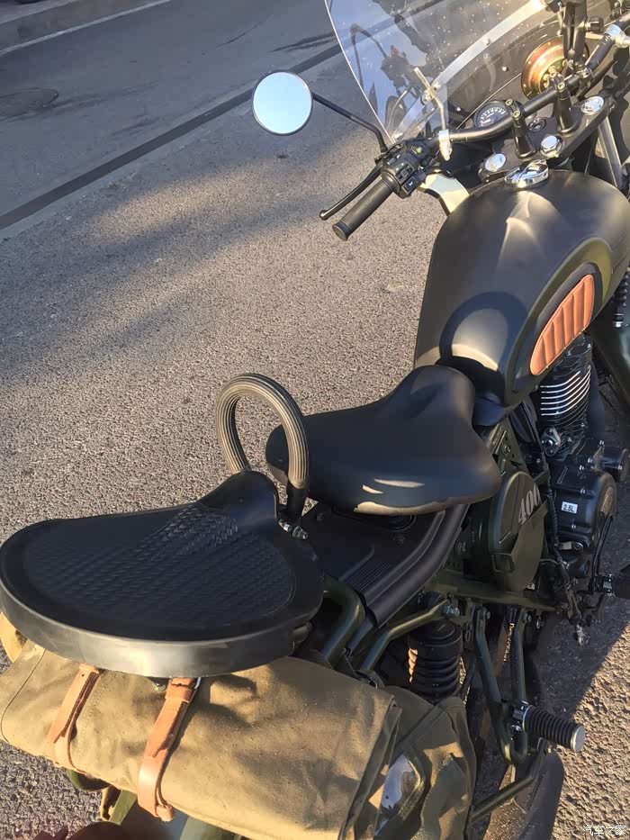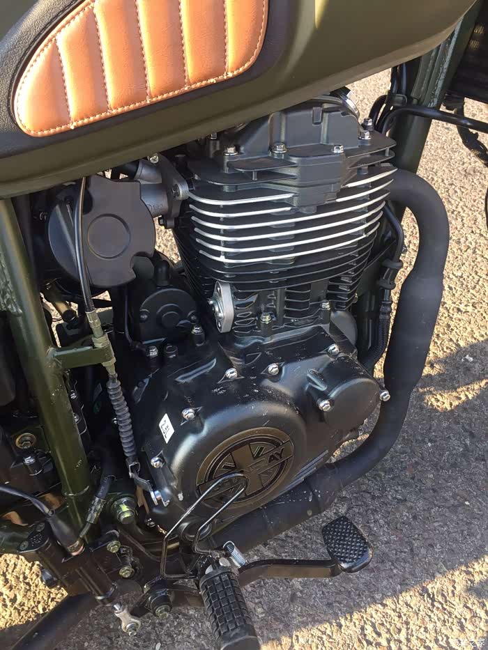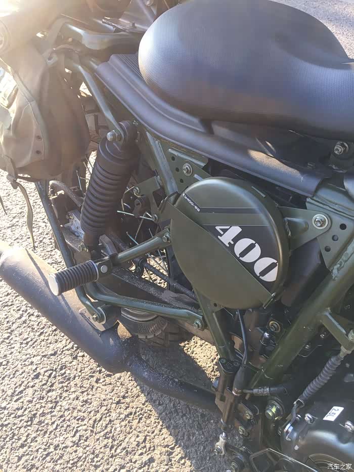 目前在城市里骑行了300多公里,还好没碰到漏油的情况,心里踏实了不少,看来发动机确实是升级改进了的。才骑车的时候双脚要略垫才能挨着地面,但经过这段时间的骑行后,穿着百利的550st沙漠靴骑行,双脚挨着地面也是没问题的。低扭矩情况下力量也挺不错,很适合在山地城市里骑行。排气部分做了消音处理,毕竟我不太喜欢那种过于炸裂的感觉。