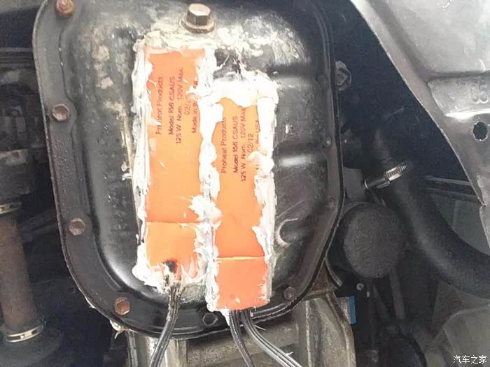 最后,再给补充一个更为简单粗暴的加热方法,油底壳加热器(oil pan heater)。原理一看就懂,直接连12v电,把机油加热。
