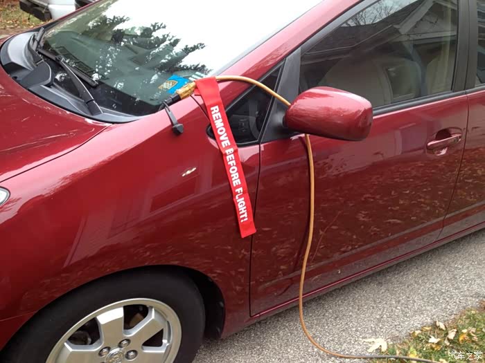 还有普锐斯车主弄了个“Remove before flight”绑在电源线上,很赞啊。