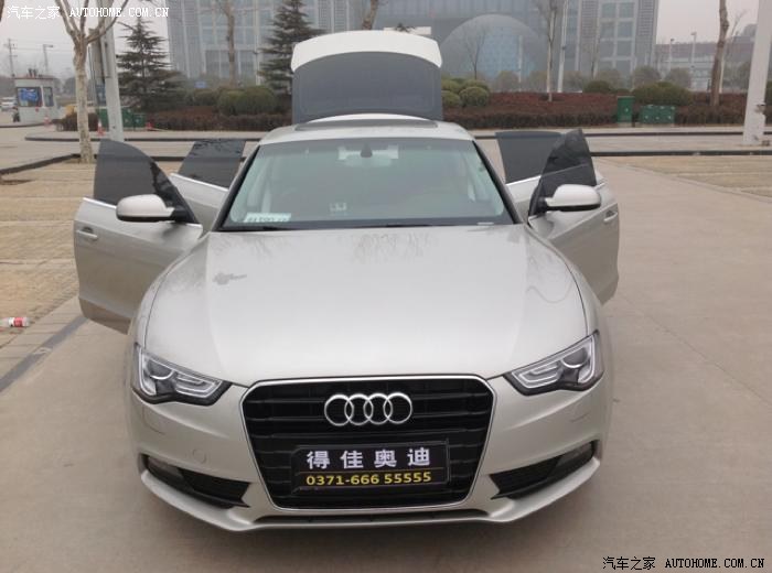 期待已久的时刻终于到来,注册汽车之家帐号已五个月啦一直处于潜水状态,由于水平有限不敢妄加评论,哈哈、、、言归正传接下来小弟就简单讲一下选择奥迪A5的心路历程,在一起有几个玩的不错的兄弟都特别喜欢车,受他们的影响我也慢慢开始慢慢开始研究车,年轻人对梦想的追求,对自由的向往当然我也不例外,拥有一辆自己喜欢的车,一直是自己的梦想,我自己的第一辆车是东本思铂睿,运动版,年轻时尚张扬,非常喜欢我的黑丝(黑色思铂睿)由于我的另外两个朋友相继换车一个是天籁换GLK300,一个直接上英菲尼迪M37,我也按耐不住自己开始物色一个适合自己的车,最后锁定了几款车其中有,讴歌MDX,宝马X5,奥迪Q7之间决定,一直开思铂睿要换车了想换一部大越野,宝马店去了以后不能试驾而且优惠幅度小,最关键是价格超出预期二十万左右,最后帕斯,讴歌店去了三次每次去都有订车的冲动,最后在讴歌销售员的强大的优惠幅度下我被拿下了(优惠了23万2012年十一月底)交了一万定金,准备月底提车 后因资金周转问题讴歌夭折,定金不退(欲哭无泪,以后再也不要踏进讴歌店,哎,惨痛啊),后来去奥迪店看Q7,看完以后直接帕斯,太老了,正在纠结的时候突然间眼前一亮,哇。。。。这是什么?时尚的外观,优雅的线条,霸气的前脸,稳重的大脚,就是你,我心中的战车,A5你好似毒药一般,深深的把我吸引,我的选车经历峰回路转,立刻开始谈,最后敲定价格,现场置换,付清尾款,哈哈。。。。小五到手,下面开始上图拉,本来提车第二天就想做作业呢,由于郑州的鬼天气不是下雨就是雾霾,不是雾霾就是大雾,近期有回去了一趟南阳老家公里数直线上升所以到现在才上作业哈哈。