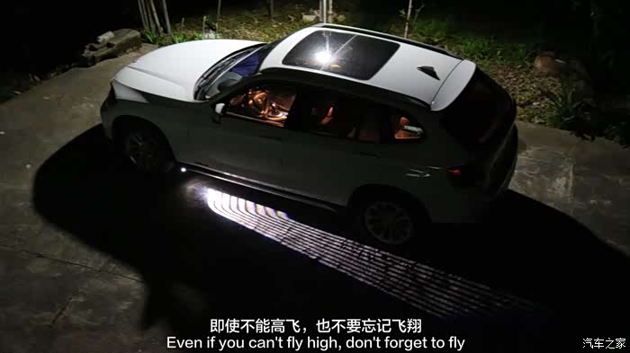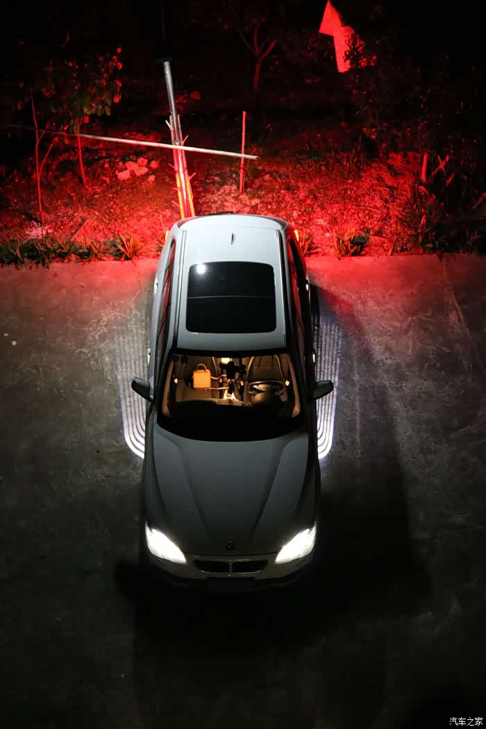 这个迎宾光毯跟随门把手的迎宾灯,解锁之后缓慢点亮,上锁缓慢熄灭,仪式感是有了,但是我后来给拆了,不建议大家安装,原因有三:一是亮度远远没有图片上看起来那么亮,我这是在很黑的地方拍的,而且是用单反拍的才这么亮,平时在路灯下用肉眼看亮度真是不足,一看就是副厂的,而且X1本身有门把手灯,门把手灯会照到地上,导致迎宾光毯光形不清晰。二是这款迎宾光毯的线条有蓝边,质感上还是差一些。三是质量不行,灯头防水性不够好,长期***在外面会进水汽。