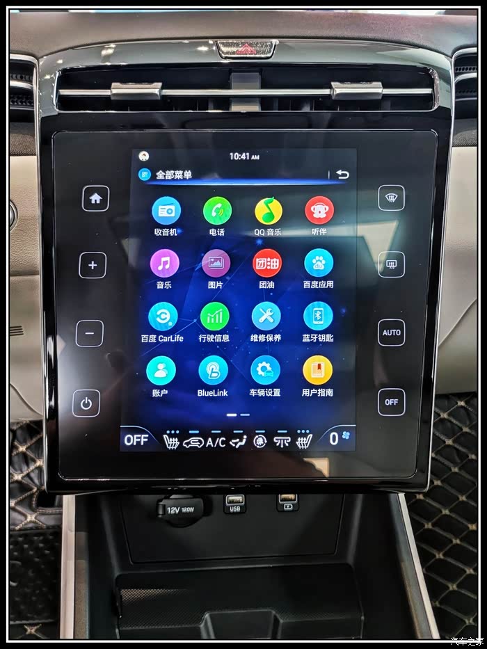 中控显示屏下方的储物空间和接口(点烟器,usb和充电口)